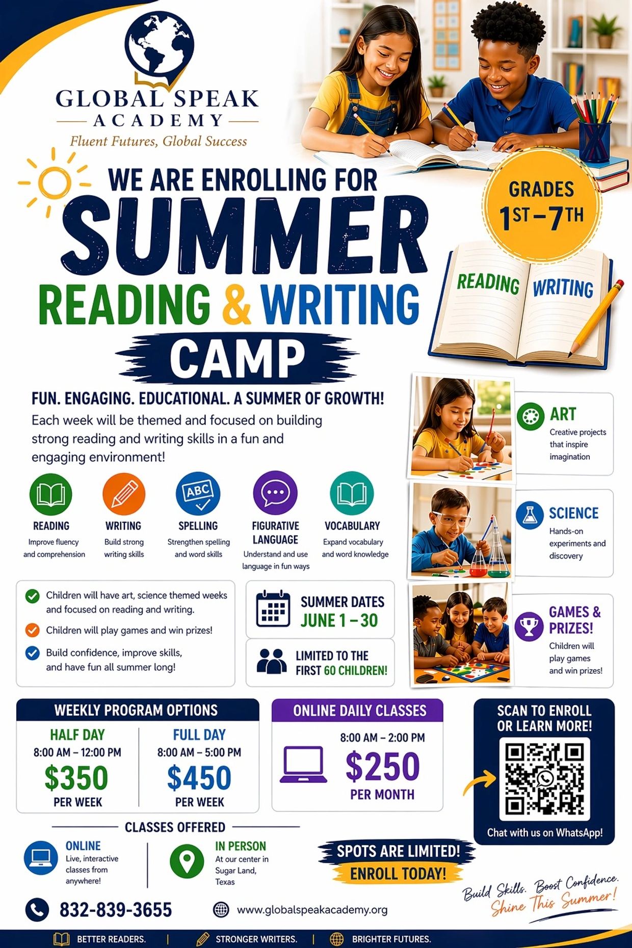 Our Summer Camp helps students strengthen reading, writing, and communication skills in a structured, engaging environment with: